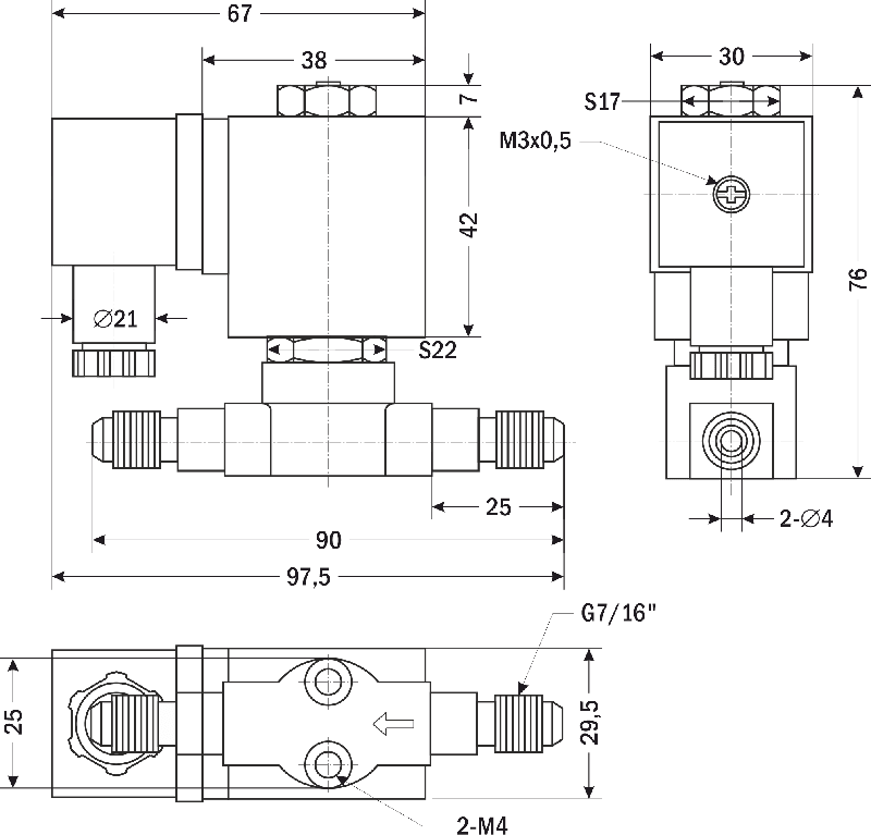 Клапан соленоидный бистабильный прямого действия с поршнем AR-YCL51 предназначен для управления потоком рабочей среды в трубопроводе