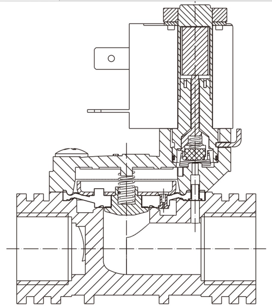 Нормально открытый соленоидный клапан – это клапан, который при отсутствии напряжения на его индукционной катушке открыт для потока рабочей среды через него. При подаче напряжения на катушку магнитный клапан этого типа закрывается и остается закрытым все время, пока напряжение подается на катушку. При обрыве провода управляющего напряжения клапан будет открыт.