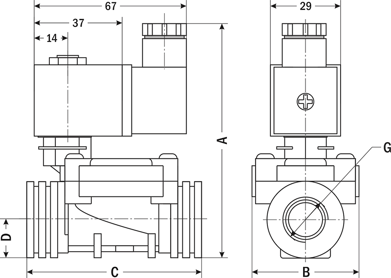 Клапан соленоидный нормально открытый непрямого действия с диафрагмой AR-2D52 предназначен для управления потоком рабочей среды в трубопроводе