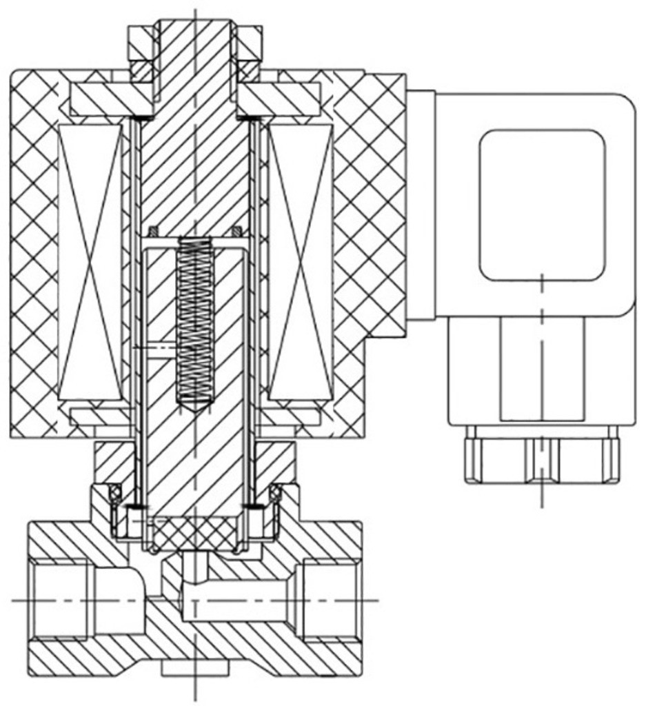 Нормально закрытый соленоидный клапан – это магнитный клапан, в котором закрытое положение сохраняется, если управляющее напряжение на его индукционную катушку не подается. При подаче напряжения на катушку нормально закрытый клапан открывается и пропускает через себя поток рабочей среды. При отключении управляющего напряжения этот клапан автоматически закрывается и перекрывает поток рабочей среды в трубопроводе. При обрыве провода управляющего напряжения клапан будет закрыт.