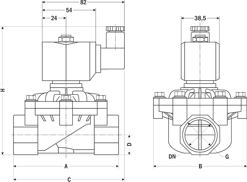 Нормально закрытый соленоидный клапан – это магнитный клапан, в котором закрытое положение сохраняется, если управляющее напряжение на его индукционную катушку не подается. При подаче напряжения на катушку нормально закрытый клапан открывается и пропускает через себя поток рабочей среды. При отключении управляющего напряжения этот клапан автоматически закрывается и перекрывает поток рабочей среды в трубопроводе. При обрыве провода управляющего напряжения клапан будет закрыт.