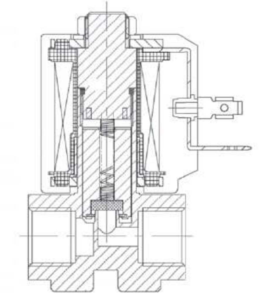 Нормально закрытый соленоидный клапан – это магнитный клапан, в котором закрытое положение сохраняется, если управляющее напряжение на его индукционную катушку не подается. При подаче напряжения на катушку нормально закрытый клапан открывается и пропускает через себя поток рабочей среды. При отключении управляющего напряжения этот клапан автоматически закрывается и перекрывает поток рабочей среды в трубопроводе. При обрыве провода управляющего напряжения клапан будет закрыт.