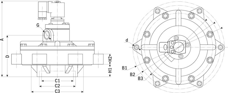 Клапаны подают воздух в течение очень короткого времени в виде сильного удара по запыленному рукавному фильтру, в результате чего происходит «обрушение» накопившегося слоя продукта со стенок рукава. Клапаны имеют высокую пропускную способность и минимальное время открытия и закрытия. Предназначены для установки на ресиверы или возможна индивидуальная установка на пневмомагистрали, в системах аспирации.