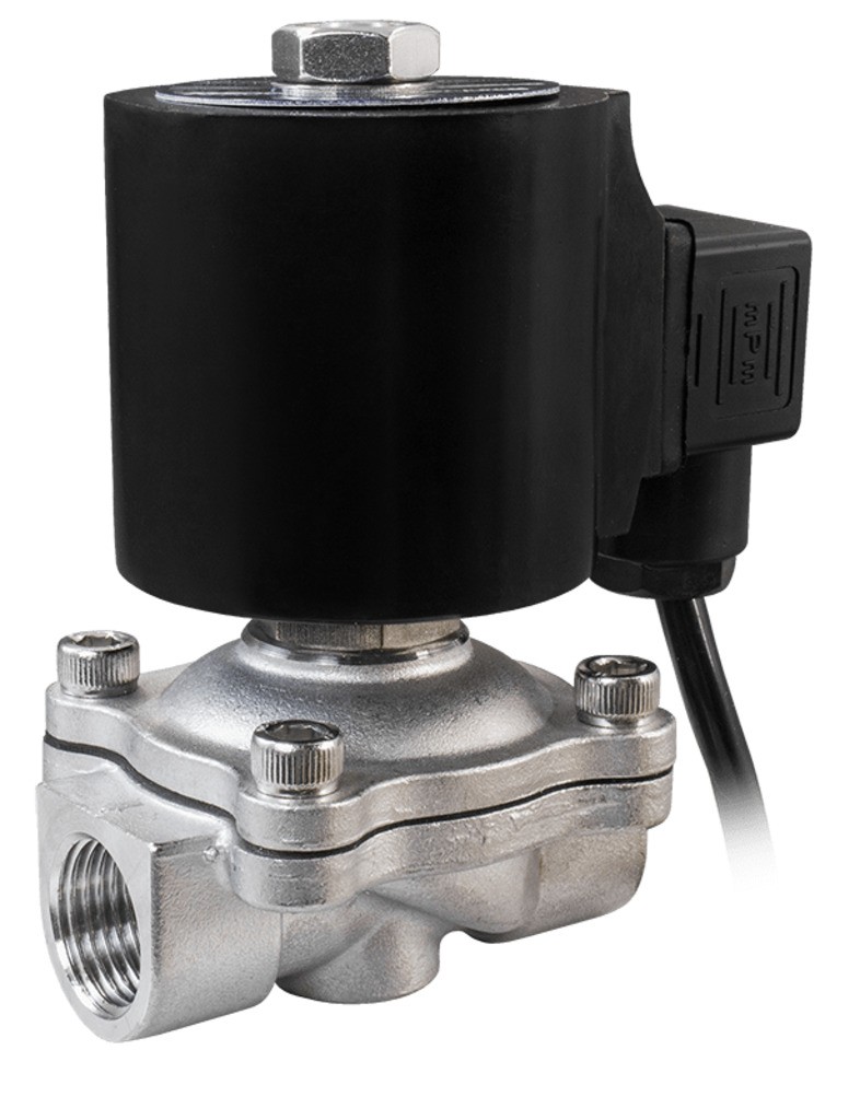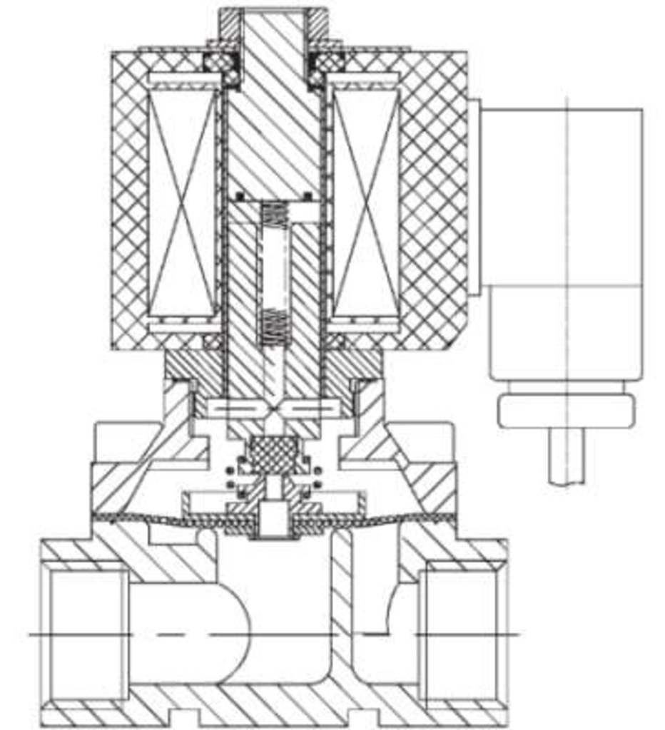 Нормально закрытый соленоидный клапан – это магнитный клапан, в котором закрытое положение сохраняется, если управляющее напряжение на его индукционную катушку не подается. При подаче напряжения на катушку нормально закрытый клапан открывается и пропускает через себя поток рабочей среды. При отключении управляющего напряжения этот клапан автоматически закрывается и перекрывает поток рабочей среды в трубопроводе. При обрыве провода управляющего напряжения клапан будет закрыт.