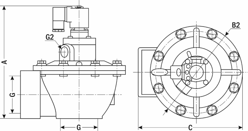 Импульсные клапаны предназначены для высокоцикличных систем очистки воздуха (циклонных рукавных фильтров) с большой пропускной способностью для создания импульса давления воздуха на выхлоп. Клапаны подают воздух в течение очень короткого времени в виде сильного удара. Клапаны имеют высокую пропускную способность благодаря угловой конструкции и минимальное время открытия и закрытия.