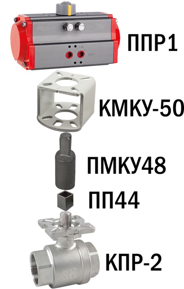 Например, на кран КПР-2-015 можно поставить ППР1-032, а при необходимости (высокое давление среды, срочная замена и т. д.) возможно установить и ППР1-040, -052.