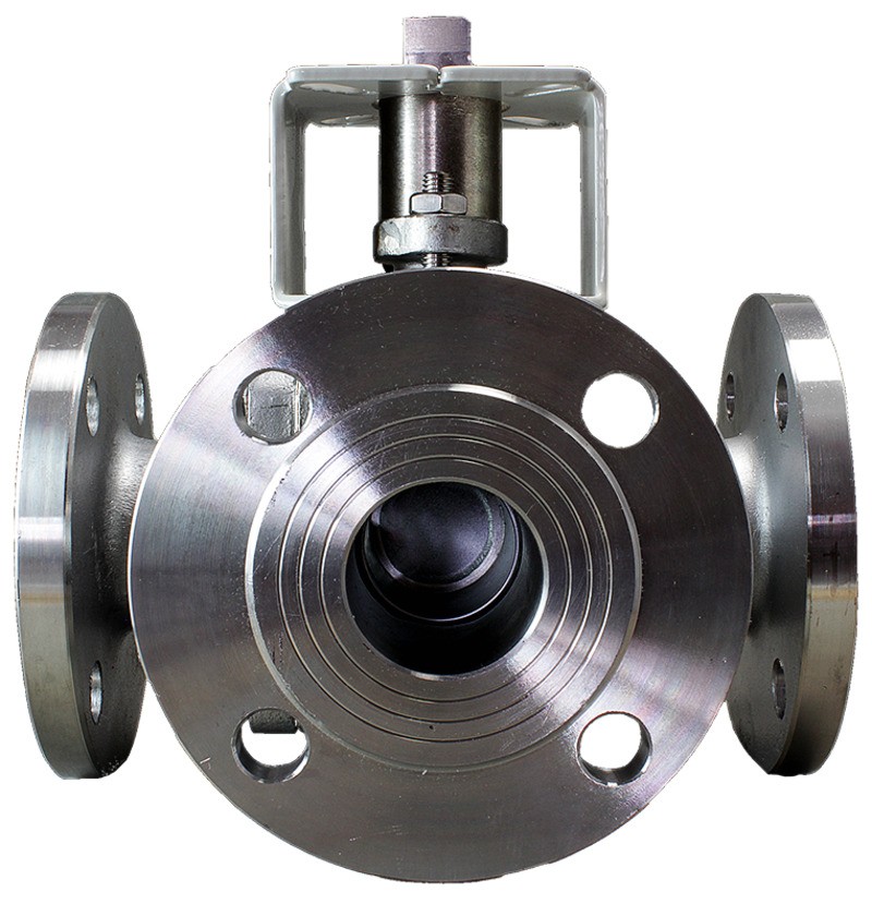 Кран шаровой трехходовой КПР-Т3Ф с пневмоприводом