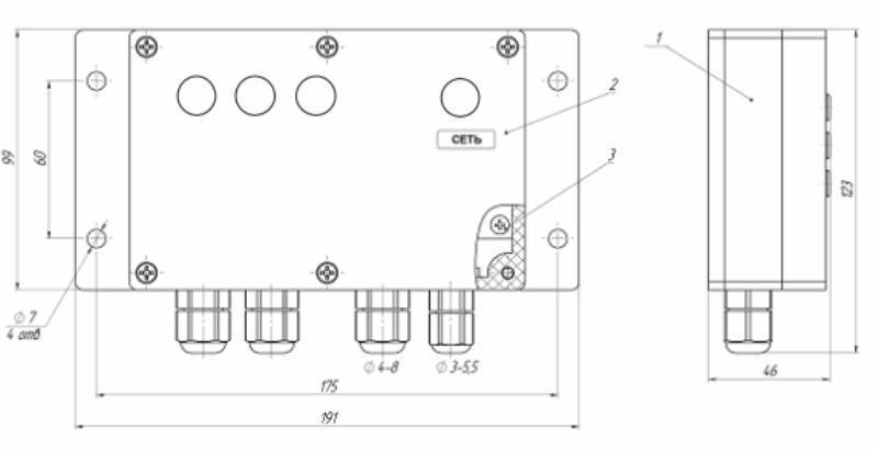 | Габаритные и установочные размеры преобразователя передающего | ||