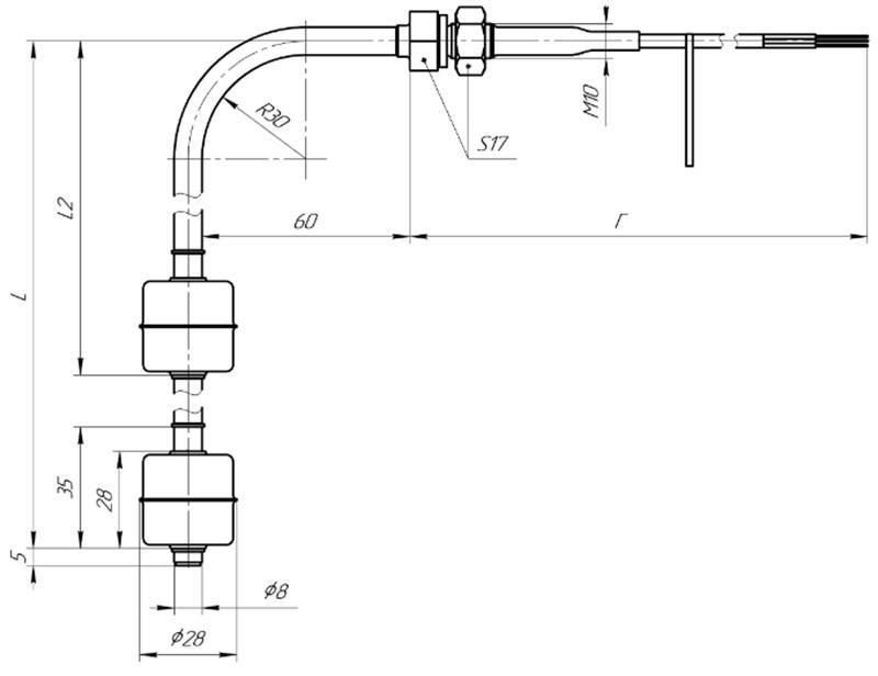![]() Внимание! Полная длина датчиков ПДУ-1.2 составляет (L + 40) мм. |