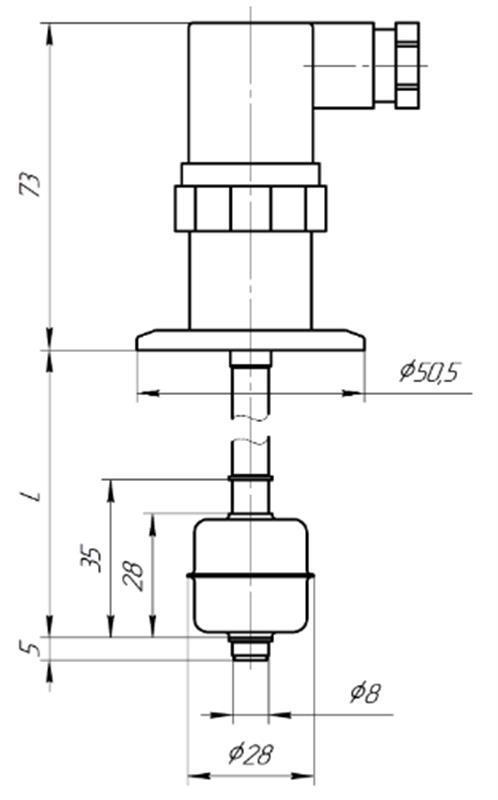 Датчик уровня имеет поплавок, передвигающийся по вертикальному штоку. Внутри поплавка находится постоянный магнит, а в штоке, представляющем собой полую трубку, находится геркон. Герконовый контакт срабатывает при приближении магнита. Если установка датчика сверху емкости невозможна, то поплавковый датчик уровня можно вмонтировать в стенку емкости или в дно.
