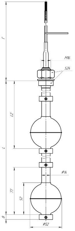 Для контроля уровня вязких жидкостей выпускаются датчики уровня с шарообразным поплавком ПДУ-3.
