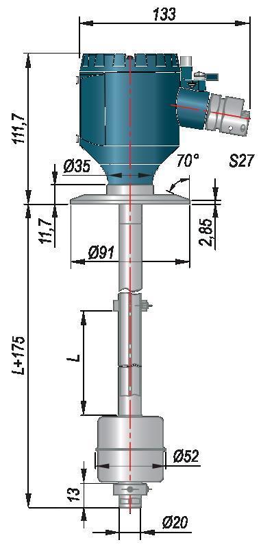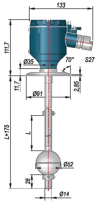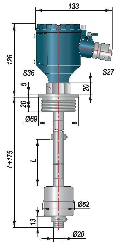 | ПДУ-И-Exd c L = 250…1250 мм (штуцер DN65) | ПДУ-И-Exd c L = 1500…4000 мм (штуцер DN65) |