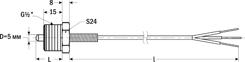 В корпусе из нержавеющей стали находится чувствительный элемент: термосопротивление Pt1000.