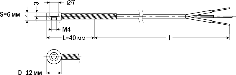 - Монтажная часть выполнена в виде кольца с внутренней резьбой М4 для фиксации датчика на объекте измерения