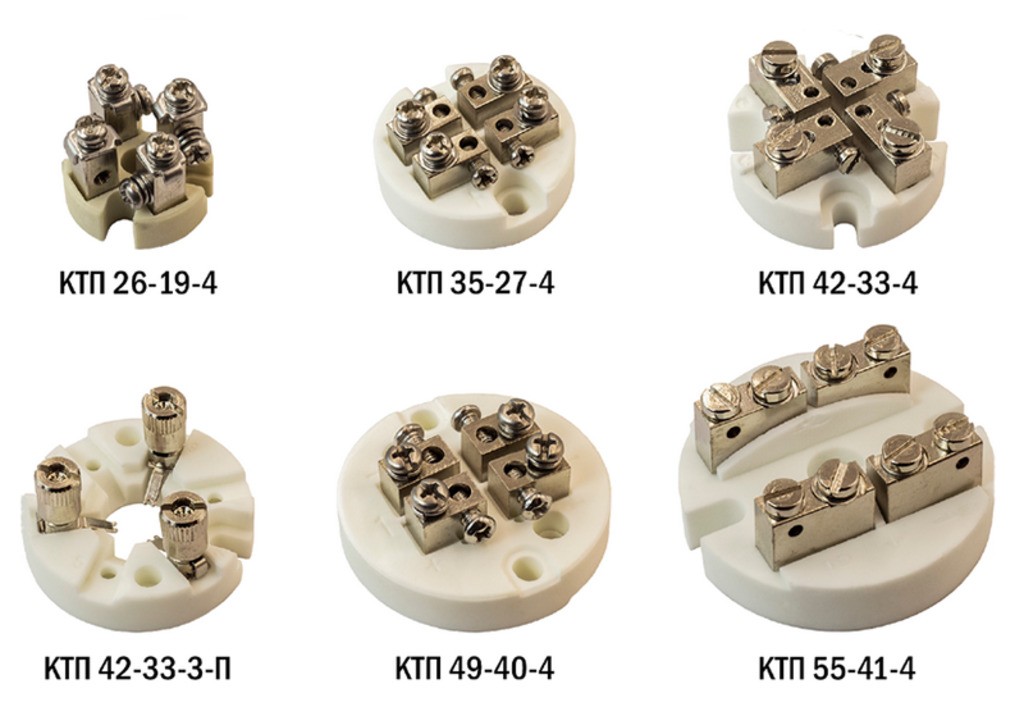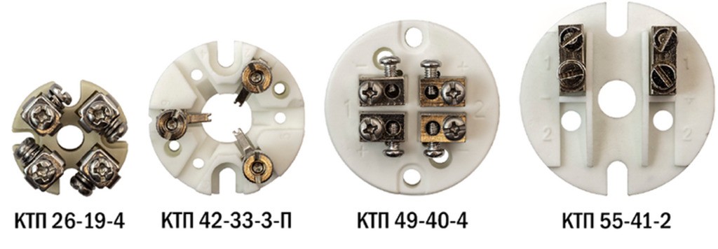 В колодках для удобного подключения выводов датчика имеются сквозные отверстия (кроме моделей КТП-26-19-2(4), КТП-55-41-2(4), КТП-42-33-3-П, КТП- 44-33-3-П): вывод датчика проходит в отверстие в основании колодки, отверстие в клемме и зажимается винтом. Выводы кабеля также зажимаются винтами