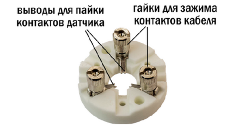 Монтаж и подключение:Клеммная колодка позволяет легко и быстро подключить контакты датчика температуры и контакты кабеля. Колодка монтируется в коммутационную головку с помощью винтов (не входят в комплект) для дополнительной защиты узла коммутации от внешних воздействий.