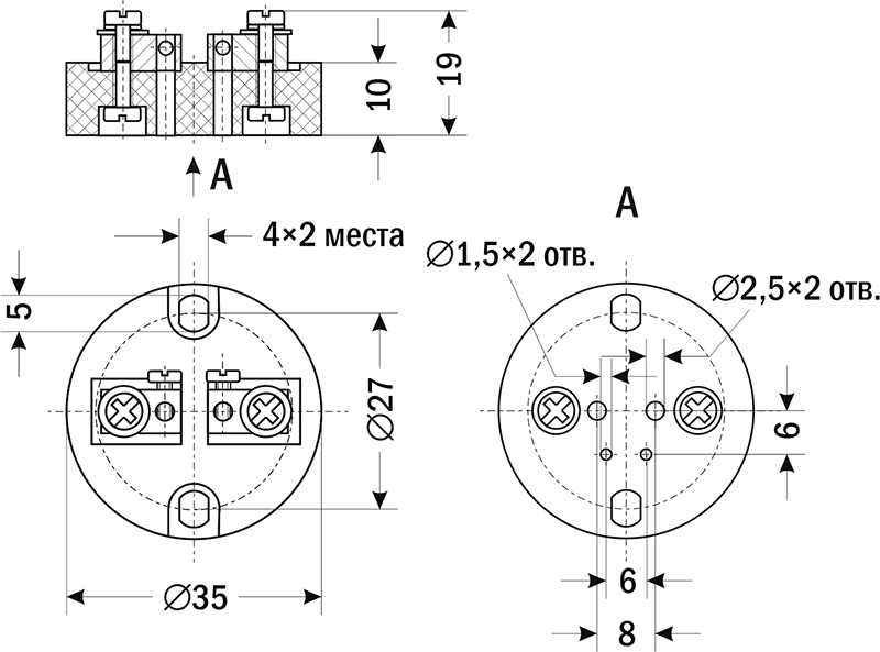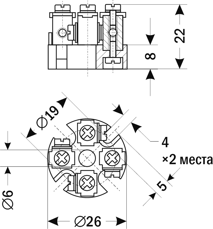 | КТП-26-19-4 (КТП-26-19-2 аналогично, с 2 клеммами) |