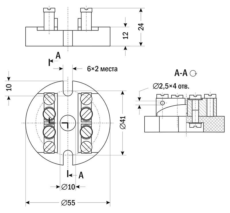 | КТП-55-41-4 (КТП-55-41-2 аналогично, с 2 клеммами) |
