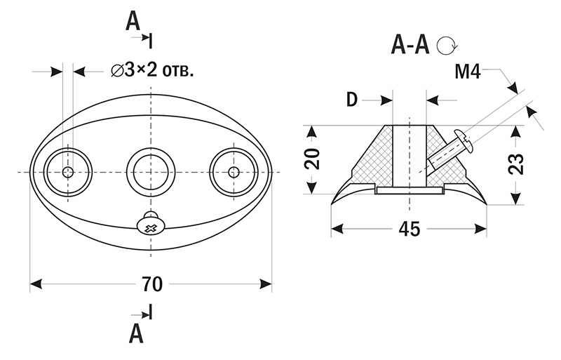 | Крепежные отверстия | 2 отв.×3 мм |