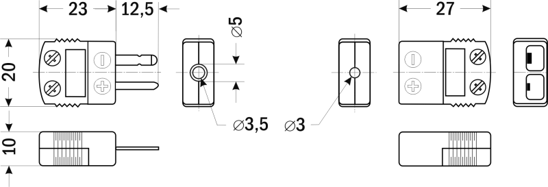 Термопарные разъемы предназначены для подключения термопар к измерительным линиям или контрольно-измерительным приборам. Применяются для протяженных и разветвленных измерительных линий. Применение разъемов позволяет оперативно заменять/добавлять термопары в АСУ ТП.