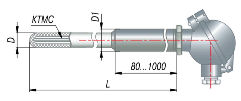 Термопара дТП155 на основе КТМС предназначена для измерения температуры жидких и газообразных сред, неагрессивных к материалу корпуса датчика