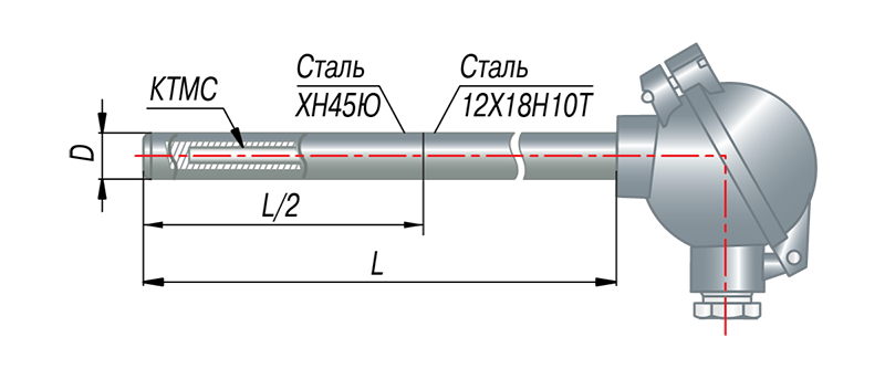 Термопара дТП225 на основе КТМС предназначена для измерения температуры жидких и газообразных сред, неагрессивных к материалу корпуса датчика