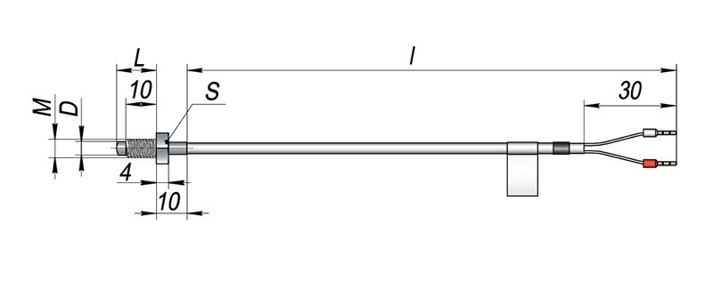 | D = 4,5 мм L = 13 мм, 20 мм, 30 мм М = М6×1 S = 10 мм l* = 0,2 м – стандарт, до 20 м – по заказу |