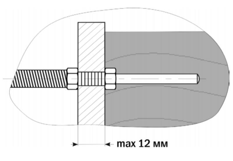 - Благодаря дополнительной гайке термопару можно закрепить на перегородке толщиной до 12 мм в отверстие без резьбы (см. рисунок)
