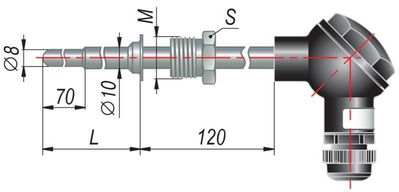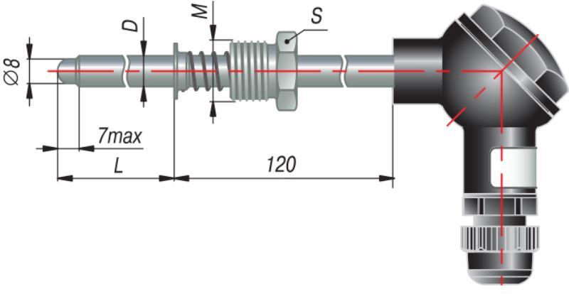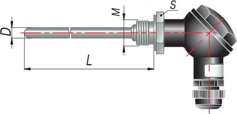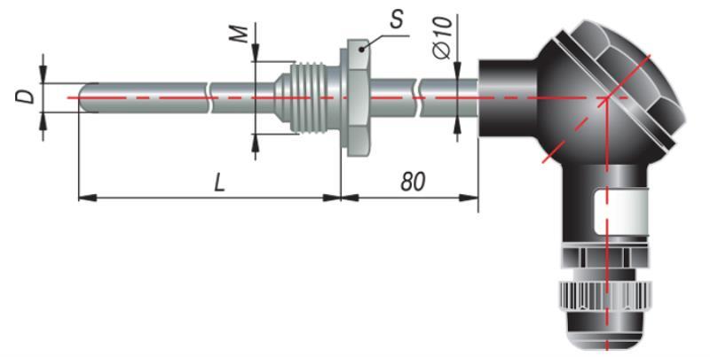 Термопара с коммутационной головкой представляет собой измерительный элемент (спай двух проводников из различных металлов), заключенный в защитную оболочку. Ключевыми конструктивными особенностями являются: