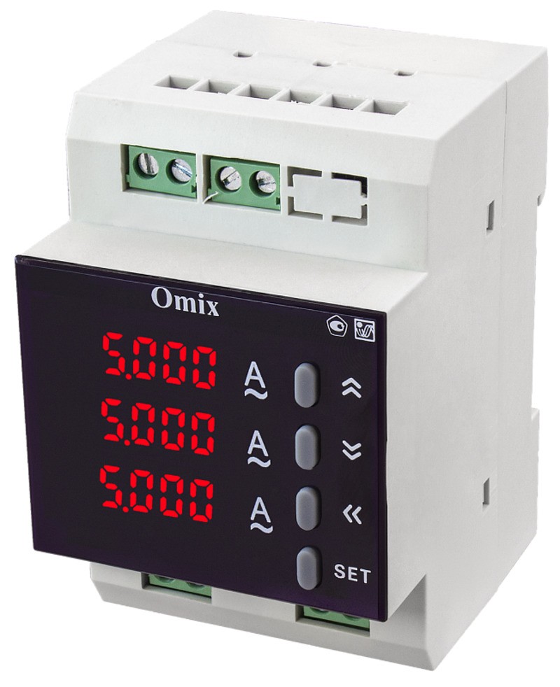 Амперметр трехфазный на DIN-рейку Omix D3-A3-3-RS485-N2 предназначен для измерения и индикации силы тока в трехфазных сетях переменного тока, а также для передачи измеренных значений по протоколу Modbus RTU