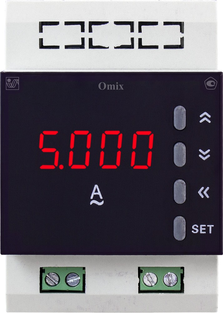 Амперметр однофазный на DIN-рейку Omix D3-A1-1-N2 предназначен для измерения и индикации силы тока в однофазных сетях переменного тока