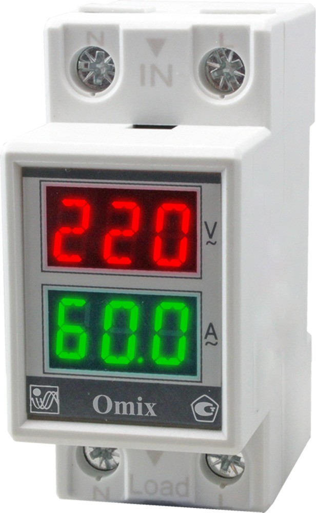 Цифровой вольтамперметр на DIN-рейку Omix D2-AV2-1 предназначен для измерения и индикации напряжения и силы тока в однофазных цепях переменного тока